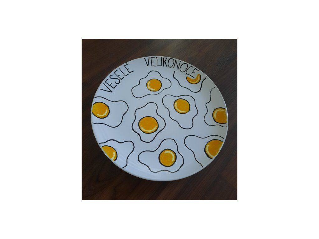 Kulatý velikonoční talíř, ručně malovaný zapékacími barvami na porcelán. Průměr talíře 26cm